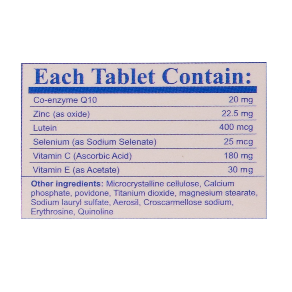 - حاوی کوآنزیم Q10، زینک، لوتئین، سلنیوم و ویتامینهای C و E