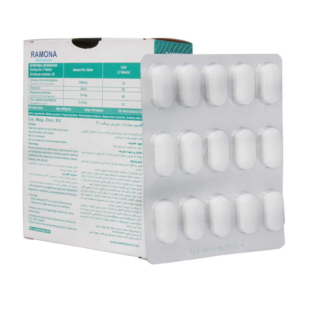 قرص کلسیم سیترات رامونا با داشتن مواد مغذی و معدنی مختلف مانند کلسیم، ویتامین دی، منیزیم و زینک به سلامت استخوانهای شما کمک زیادی کرده و از مشکلات استخوانی جلوگیری میکند.