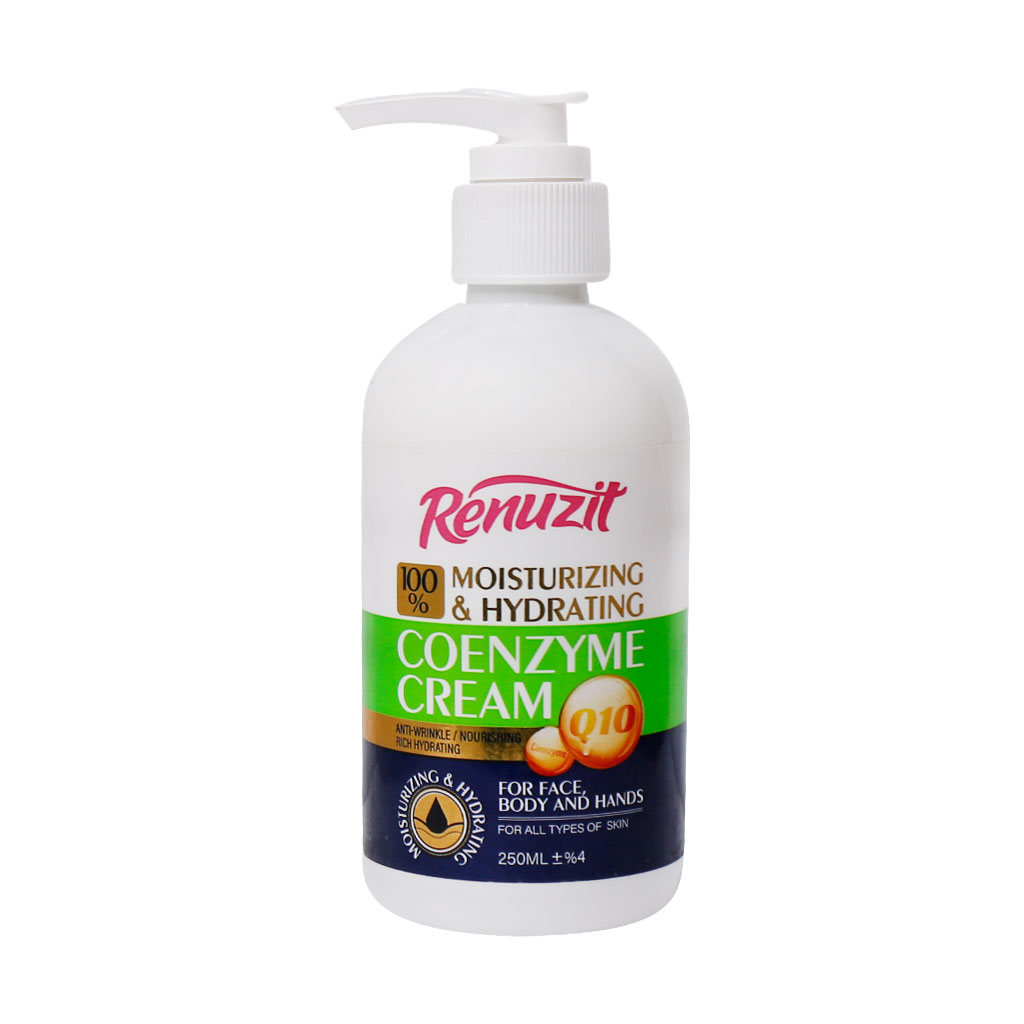 کرم پمپی آبرسان و مرطوب کننده رینوزیت حاوی کوآنزیم Q10 است. کوآنزیم کیوتن از پوست در برابر اثرات مخرب رادیکالهای آزاد محافظت کرده و مانع از پیری زودرس پوست میشود. این ماده از تجزیه کلاژن جلوگیری میکند، لکهای پوستی را از بین برده و به ترمیم و بازسازی سلولهای آسیبدیده پوست میپردازد. پیشگیری از تولید زیاد ملانین و تغییر رنگ پوست، افزایش خاصیت ارتجاعی پوست، کمک به ساخت کلاژن و الاستین، محافظت از پوست در برابر اشعه ماورابنفش، بهبود لایه اپیدرم و رفع زبری پوست از جمله فواید کوآنزیم Q10برای پوست است. کرم آبرسان و مرطوب کننده ریونوزیت به سبب ترکیبات موثر خود از تبخیر رطوبت موجود در بافت پوست جلوگیری کرده و پوست را نرم و لطیف میکند.