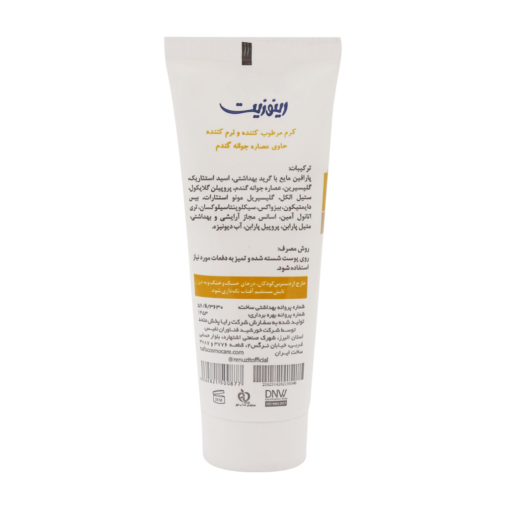 کرم تیوپی مرطوب کننده و نرم کننده عصاره جوانه گندم رینوزیت 75 میلی لیتر