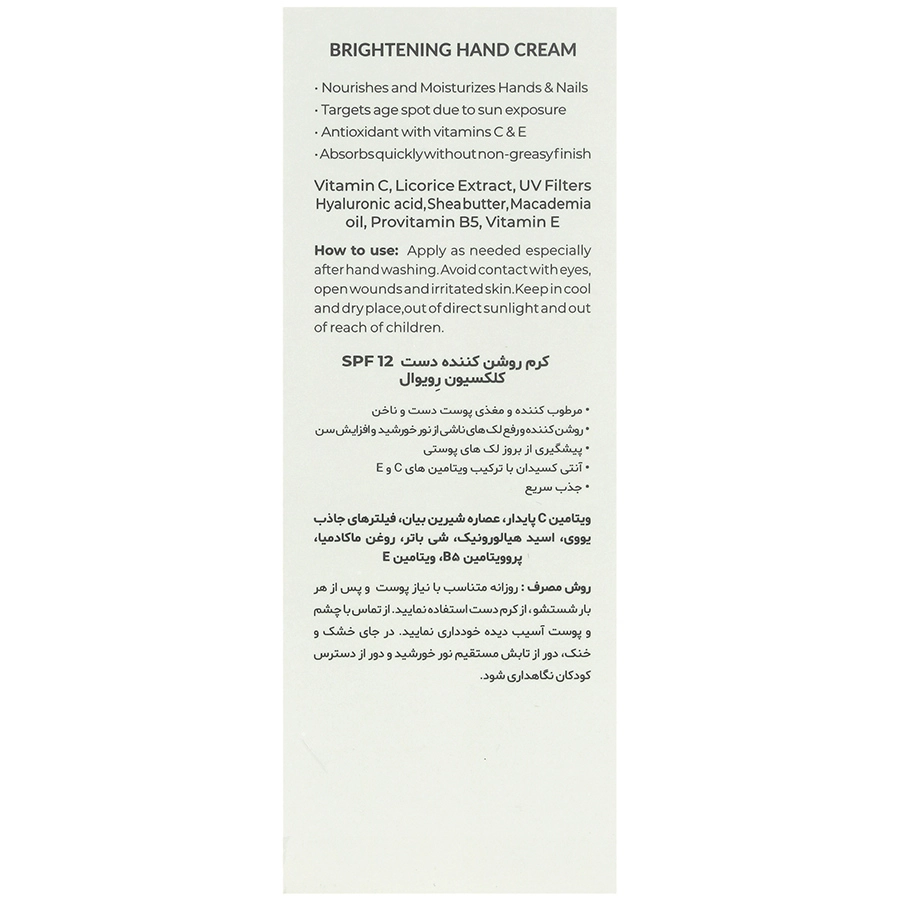 کرم روشن کننده دست SPF12 کلکسیون رویوال 50 میلی لیتری