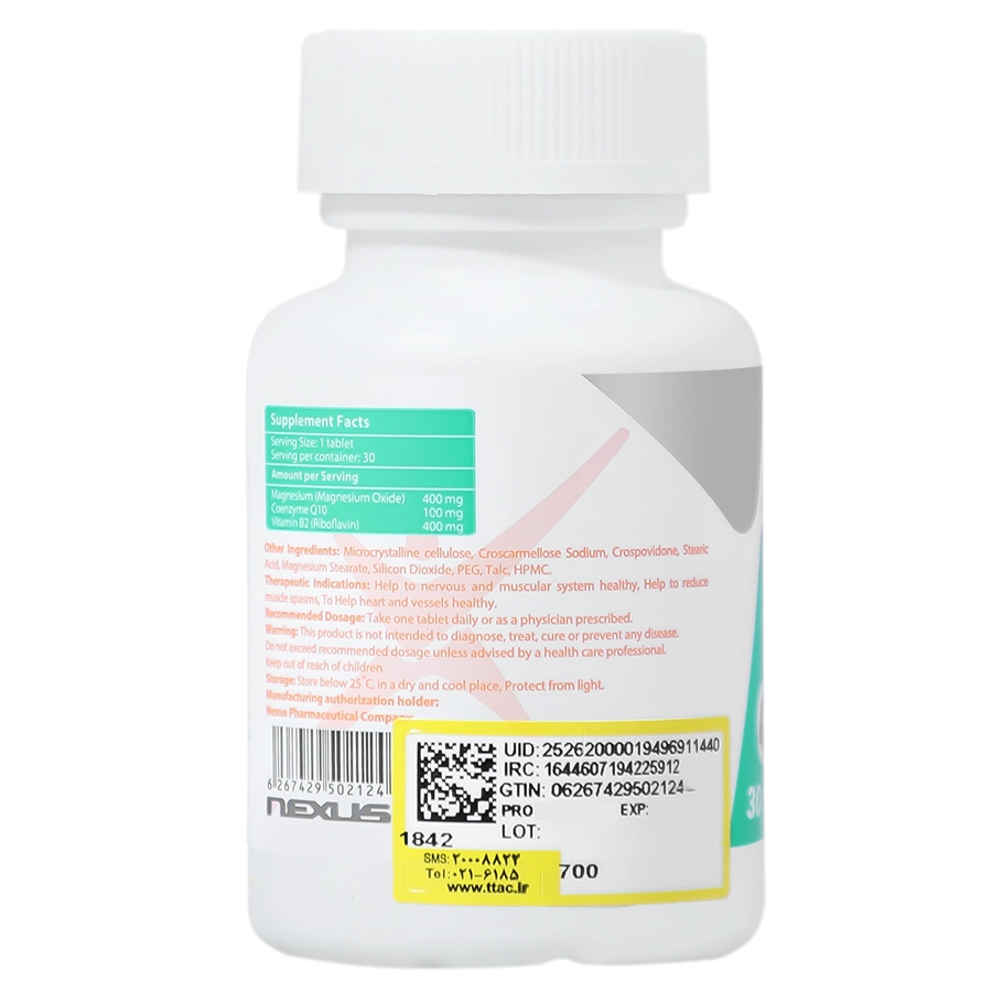 - حاوی کوآنزیم کیوتن، منیزیم و ریبوفلاوین (ویتامین B2)