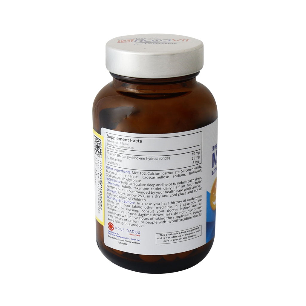 قرص ملاتونین و ال تئانین رزاویت که به تنظیم خواب و ایجاد خواب آرام تر کمک میکند. نقش اصلی ملاتونین تنظیم چرخه شب و روز یا خواب و بیداری است.