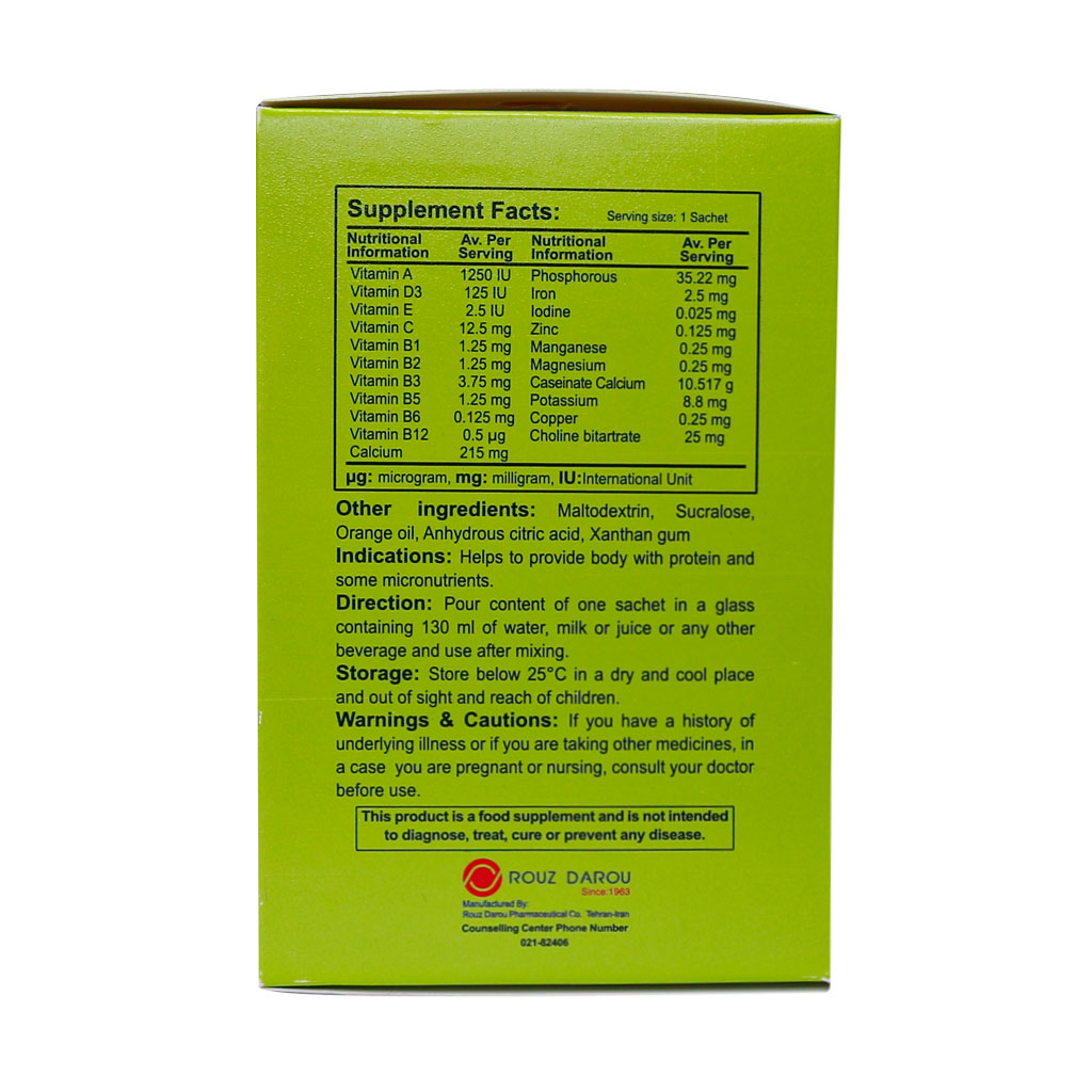 محتویات 1 ساشه را در یک لیوان 130 میلی لیتری آب، شیر، آب میوه یا هر نوشیدنی دیگر مخلوط و میل نمائید.