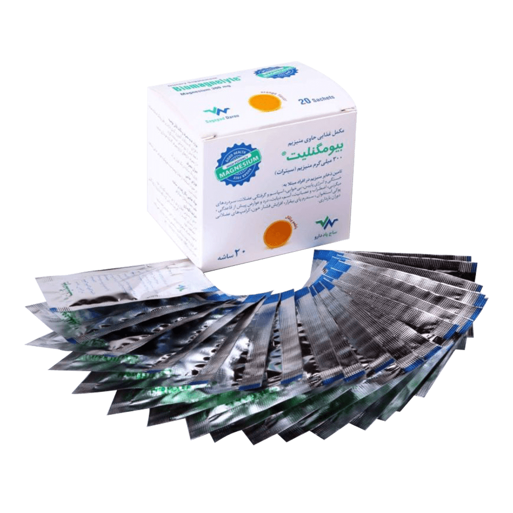 ساشه منیزیم بیومگنلیت ساج پاد دارو به جذب کلسیم کمک کرده و یکی از ضروریترین املاحی است که باید به طور روزانه در رژیم غذایی گنجانده شود. منیزیم در بدن موجب تسکین اعصاب شده و برای سلامت قلب، عضله و کلیه مفید است.