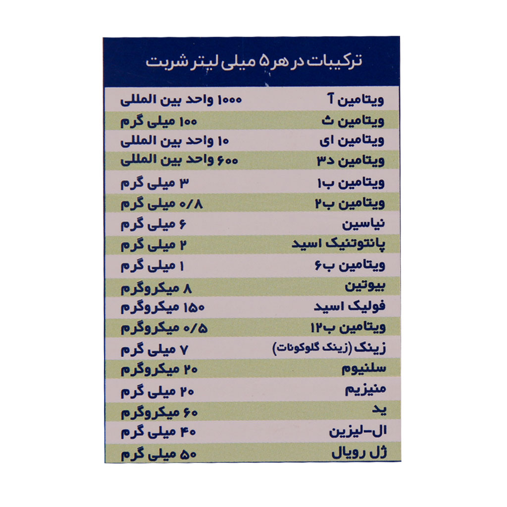 جدول ترکیبات به ازای هر 5 میلی لیتر شربت