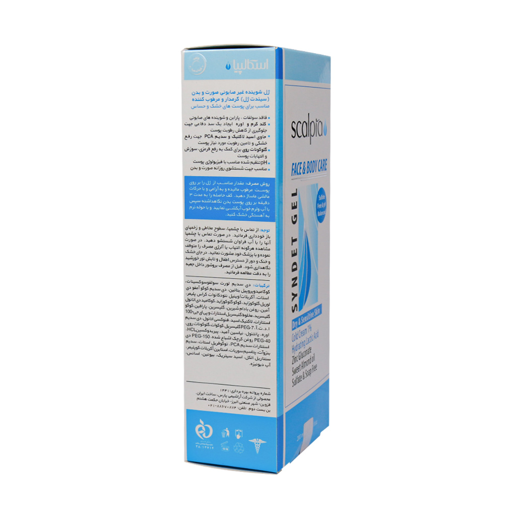 ژل شوینده غیر صابونی صورت و بدن پوست خشک اسکالپیا مناسب افزایش رطوبت پوست، رفع خشکی، قرمزی، سوزش و التهابات پوستی است. PH این شوینده تناسب خوبی با فیزیولوژی پوست دارد و جهت شستشوی روزانه صورت و بدن کاربرد دارد.