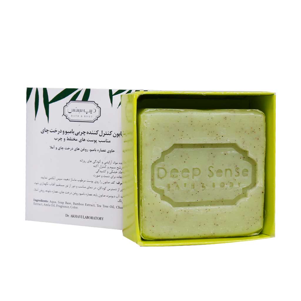 صابون کنترل کننده چربی بامبو و درخت چای دیپ سنس مخصوص پوست‌های چرب و مختلط فرموله شده است. این صابون برای استفاده روزانه مناسب بوده و کلیه آلودگی‌های دست و صورت و آرایش را از بین می‌برد. صابون دیپ سنس سی گل دارای مواد ضد التهاب و کنترل کننده چربی است و از پوست در برابر ایجاد آکنه و جوش محافظت می‎کند. همچنین این محصول با پاکسازی چربی‌های اضافه پوست به کنترل چربی پوست نیز کمک می‌کند، احساس خشکی و کشیدگی ایجاد نمی‌کند و باعث کوچکتر شدن منافذ باز پوست نیز می‌شود. صابون کنترل کننده چربی دیپ سنس سی گل به عنوان یک ضد التهاب قوی التهاب، تورم و قرمزی پوست را از بین می‌برد. از بین رفتن باکتری‌های مولد جوش و شفاف سازی از دیگر فواید انواع صابون کنترل کننده چربی است.