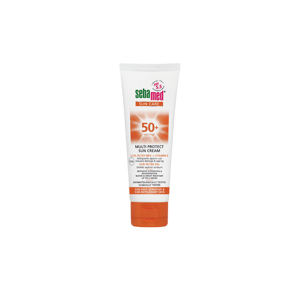 کرم ضد آفتاب و محافظ چند منظوره سبامد SPF50 مناسب انواع پوست و حتی پوست حساس که حاوی ضد چروک و مرطوبکننده است. ۹۸% حفاظت در برابر اشعه آفتاب را امکان پذیر میسازد. این محصول به دلیل داشتن SPF بالا از پیگمانتاسیون پوست و ایجاد لک در اثر نور آفتاب و نیز پیری زودرس پوست جلوگیری میکند.
