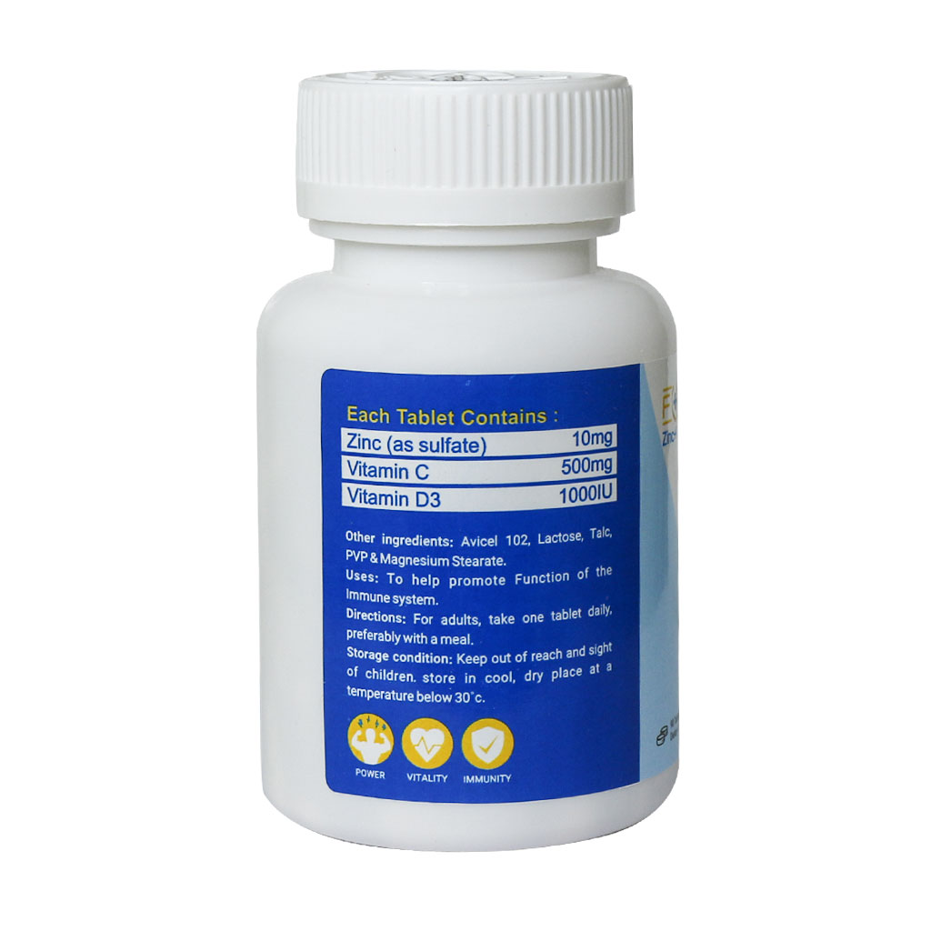 - هر قرص حاوی زینک، ویتامین C و ویتامین D3