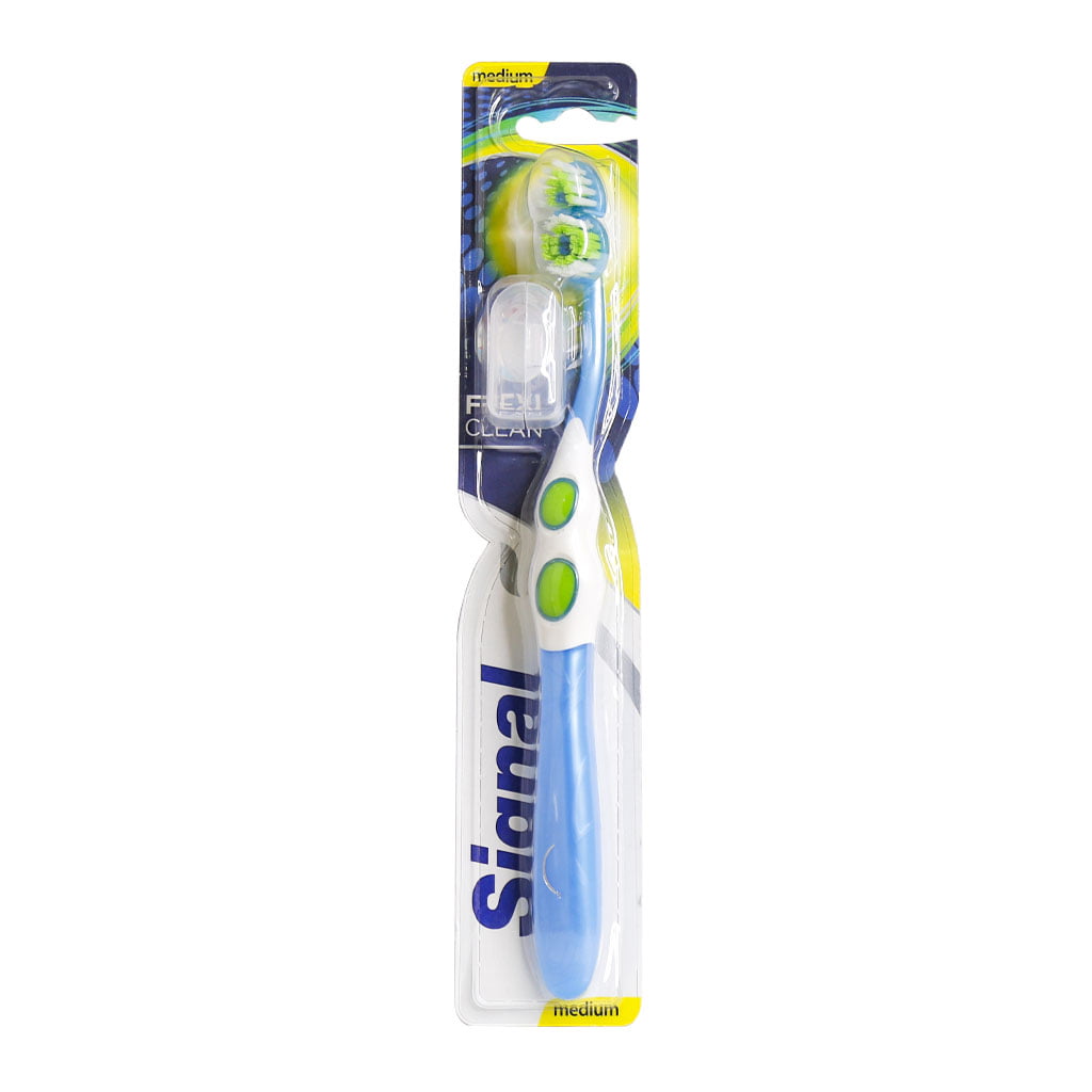 مسواک فلکسی کلین سیگنال برسی با زبری متوسط دارد و از نظر برس از بهترین انواع مسواک محسوب میشود. این مسواک سری انعطاف پذیر دارد که به وسیله آن به راحتی میتوان تمام سطوح دندان را از جرم پاک کرد. دسته این مسواک هم به شکلی درست شده که به سهولت در دست جای میگیرد و بدون زحمت میتوان با آن کار کرد. مسواک Flexy Clean یک درپوش هم دارد که پس از استفاده از مسواک و اتمام کار میتوانید آن را روی محصول قرار دهید. این مسواک ساخت سوئیس بوده و از کیفیت بسیار مطلوبی برخوردار است.