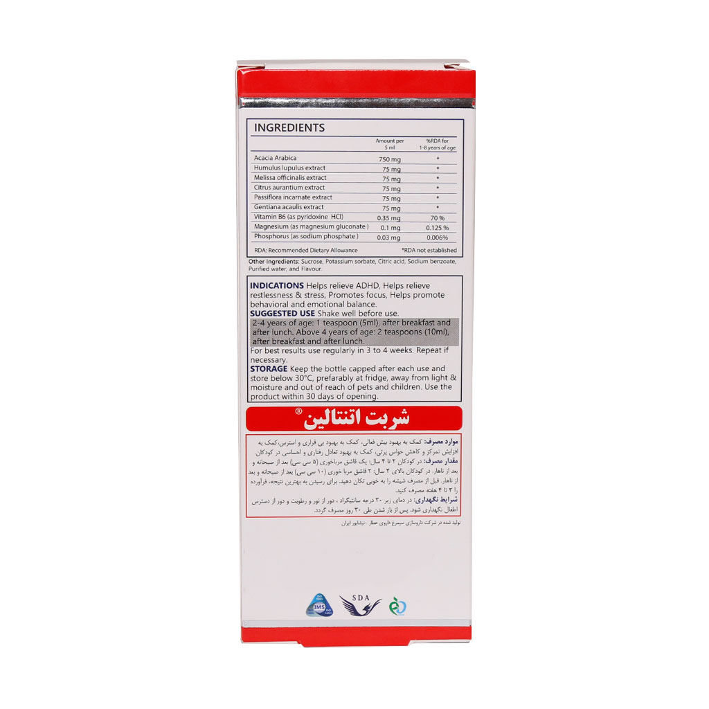 شربت اتنتالین سیمرغ دارو عطار یک داروی کاملا گیاهی جهت بهبود بیش فعالی در کودکان، کمک به افزایش تمرکز و کاهش حواس پرتی و بهبود بی قراری و استرس در کودکان استفاده می‌شود.