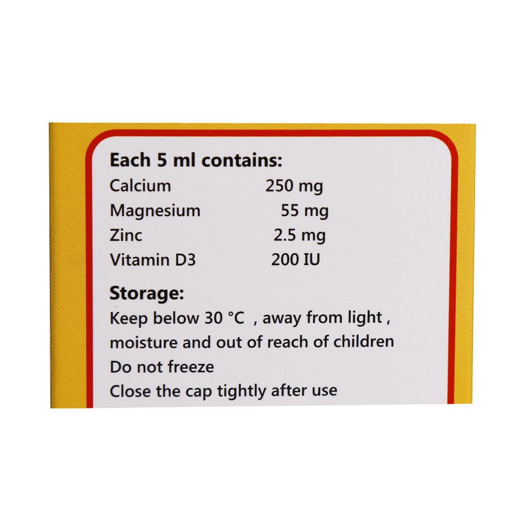 منیزیم: منیزیم موجود در شربت کالمرز در بیش از 300 واکنش آنزیمی در بدن انسان نقش دارد. این واکنشها در ساخت پروتئین، انقباض عضلات، عملکرد صحیح سیستم عصبی، کنترل فشار خون و … بسیار کاربردی است. منیزیم همچنین جهت ساخت استخوانها و حفظ سلامت آن نیز مورد نیاز است.