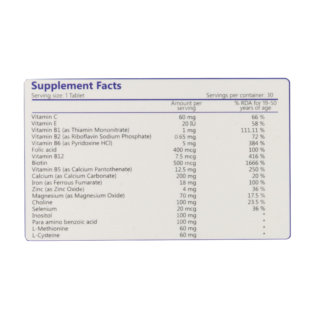 ویتامین E: با خواص آنتی اکسیدانی عالی و فوق العاده پایدار برای رشد بافتهای سالم ضروری است. ویتامین ای به کار رفته در این قرص مولتی ویتامین پوست را مرطوب و شفاف میکند، از مضرات رادیکالهای آزاد میکاهد و به حفظ رطوبت طبیعی پوست کمک مینماید.
