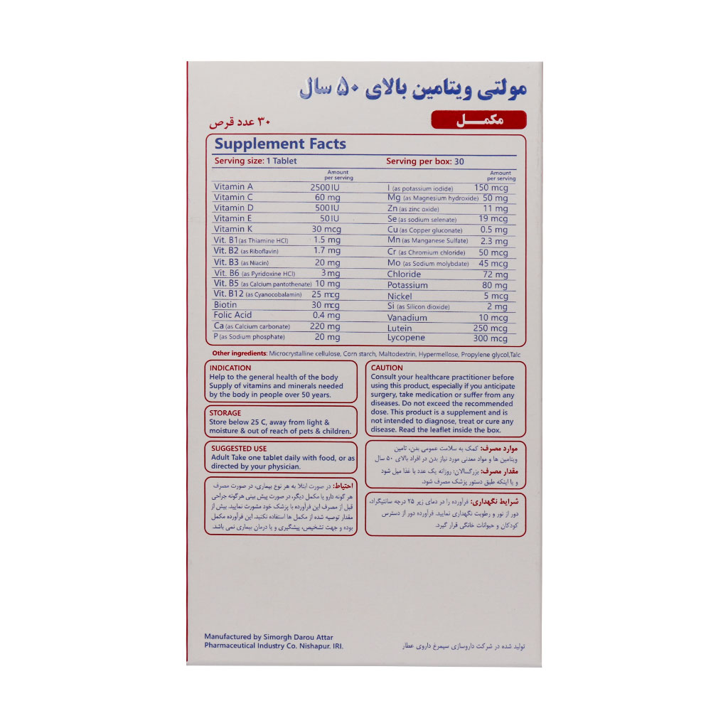 ویژگی های مولتی ویتامین بالای 50 سال ژریاتریک سیمرغ دارو