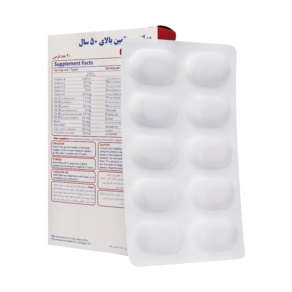 قرص مولتی ویتامین بالای 50 سال ژریاتریک سیمرغ دارو عطار 30 عدد