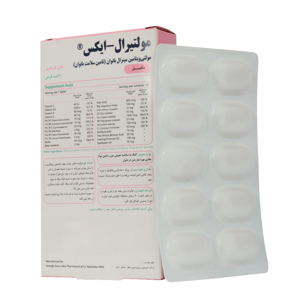 قرص مولتیرال ایکس سیمرغ دارو عطار 30 عدد