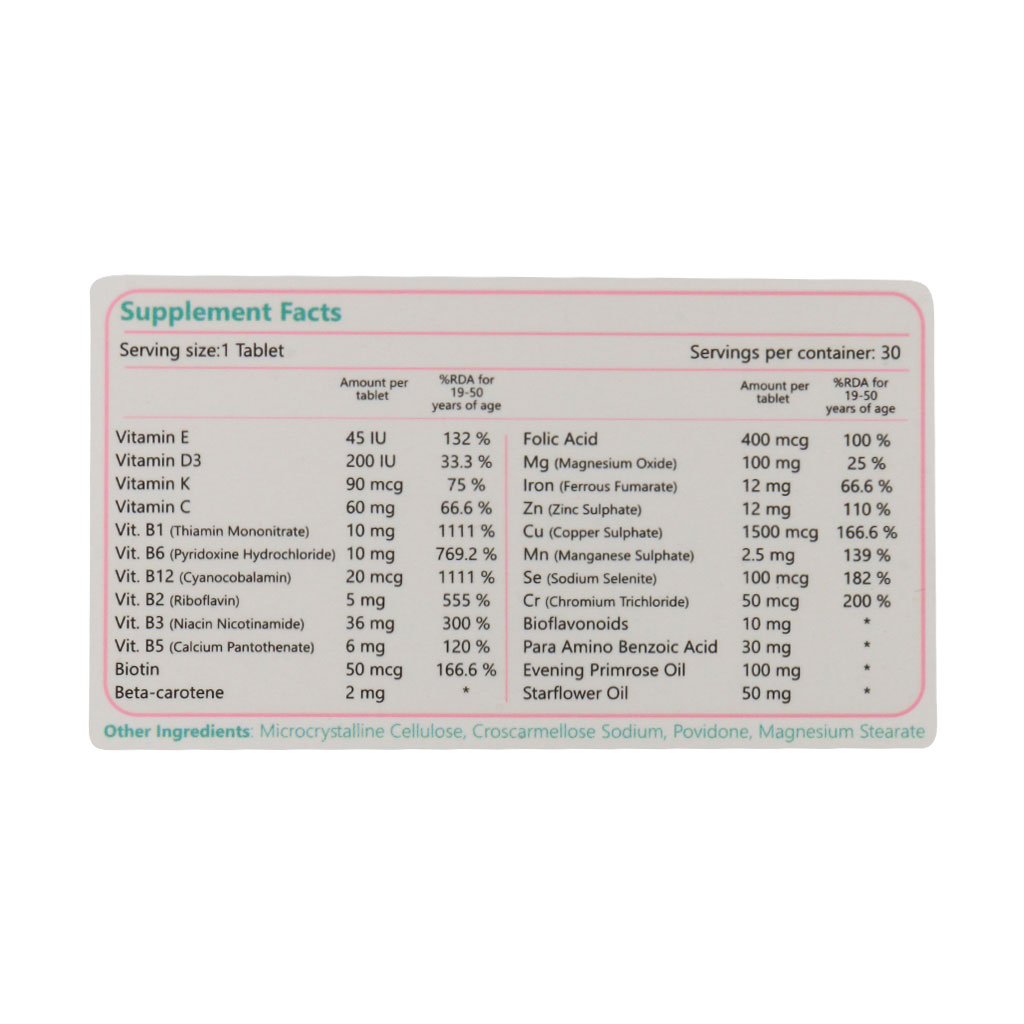 نیازهای تغذیهای هر فردی نسبت به سن، جنس و سلامت کلی او متفاوت است. به همین دلیل برخی از مولتی ویتامینها برای رفع نیازهای تغذیهای منحصر به فرد خانمها تولید میشوند به همین دلیل خرید بهترین مولتی ویتامین بانوان به شما عزیزان توصیه میشود. قرص مولتیرال ایکس سیمرغ دارو عطار حاوی روغن گل مغربی، روغن گل گاوزبان، منیزیم، ویتامینهای گروه ب، ویتامین سی، ویتامین د3 و ویتامین E بوده که به حفظ سلامت عمومی بانوان میپردازد. این محصول به تقویت سیستم ایمنی بدن بانوان، سلامت استخوانها، پیشگیری از سندرم قبل از قاعدگی و کاهش سطح فشار خون کمک میکند.