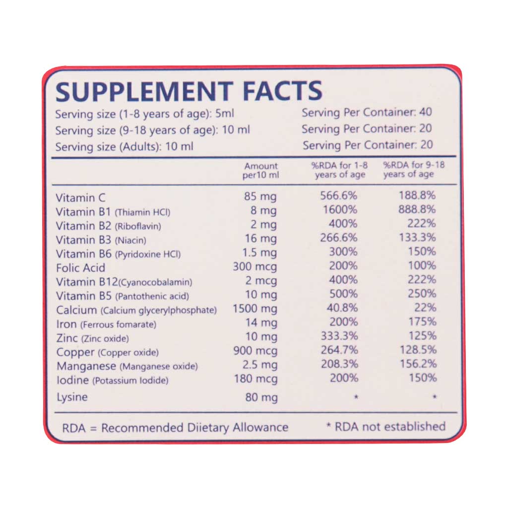 کودکان 9 تا ۱۸ سال: ۵ میلیلیتر ۲ بار در روز