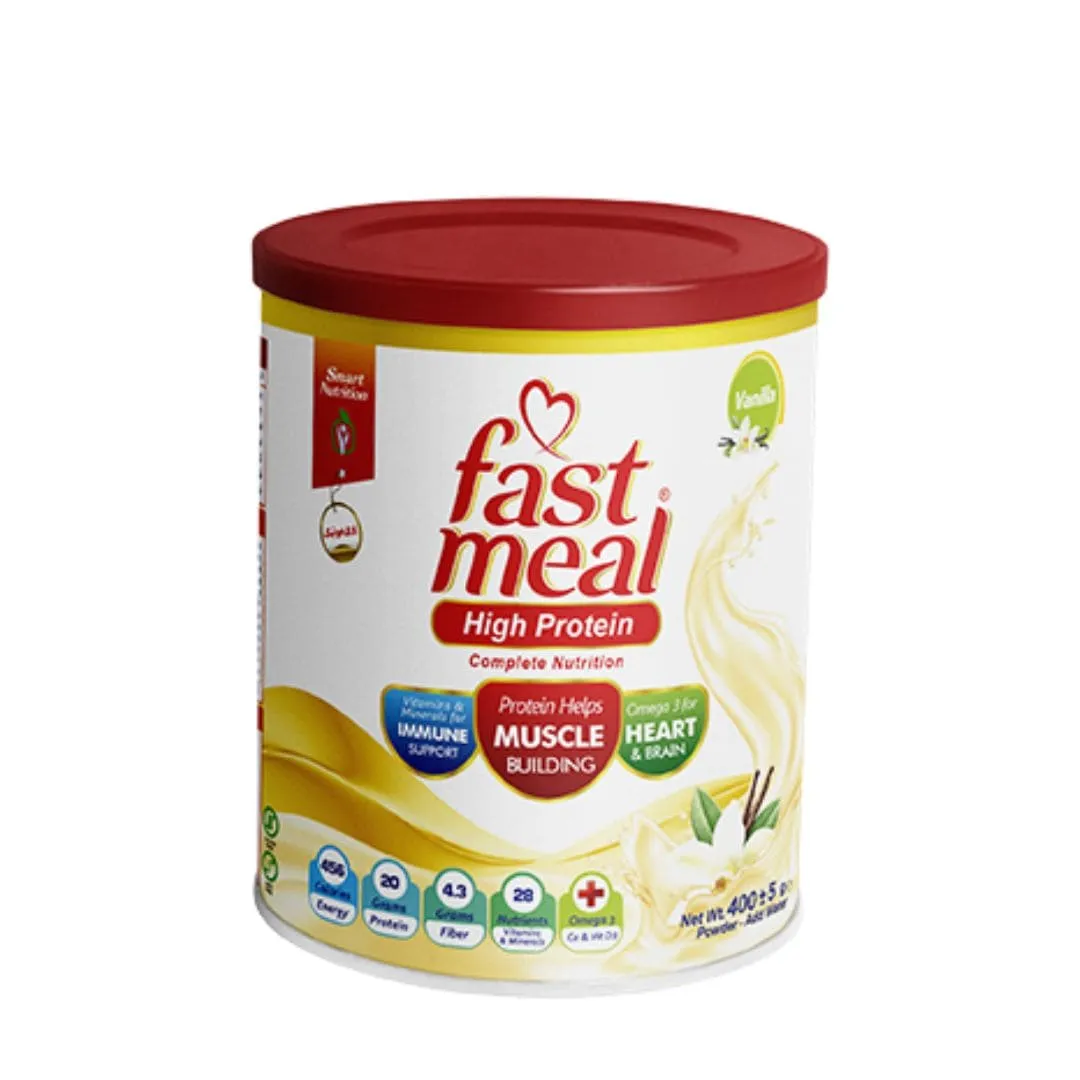 پودر فست میل پروتئین بالا اسمارت نوتریشن یک مکمل تغذیه ای کامل با 20% پروتئین بیشتر نسبت به سایر نمونه های فست میل می باشد. مکمل فست میل های پروتئین در 2 طعم شکلاتی و وانیلی ارائه شده و می تواند به صورت خوراکی یا حتی تغذیه با لوله (گاواژ) مصرف شود. در هر 100 گرم از فست میل پر پروتئین، حدود 20 گرم پروتئین با کیفیت، استخراج شده از پروتئین شیر و سویا را داراست که برای افراد دچار سو تغذیه و ورزشکاران که به پروتئین بیشتری نیاز دارند، مناسب است.