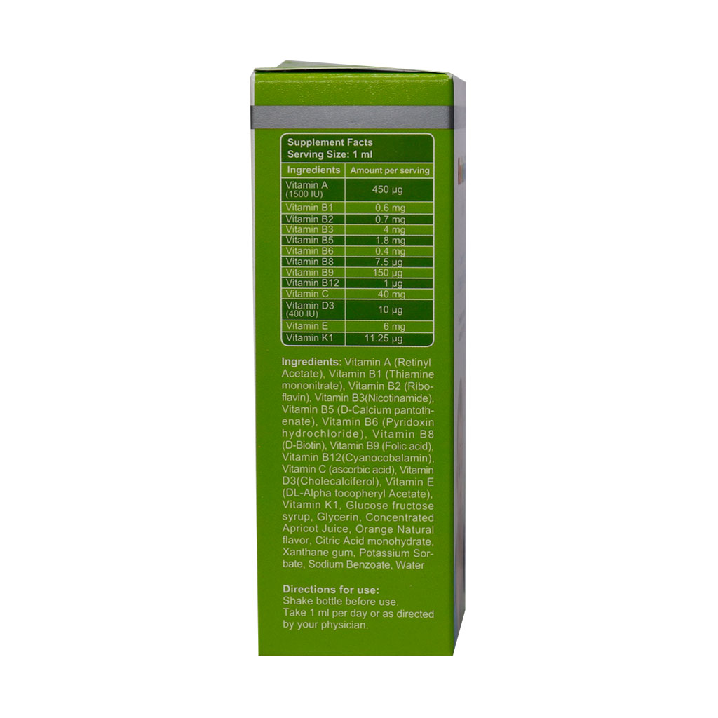 بنابراین شرکتهای فعال در حوزه مکملهای غذایی، مولتی ویتامینهای مخصوصی را برای این گروه سنی تولید کردهاند تا سلامت آنها تضمین شود. این محصول با قطره چکان و طعم پرتقال و زرد آلو وارد بازار شده تا هم به راحتی بتوان آن را در دهان کودک ریخت و هم طعم مناسبی داشته باشد.