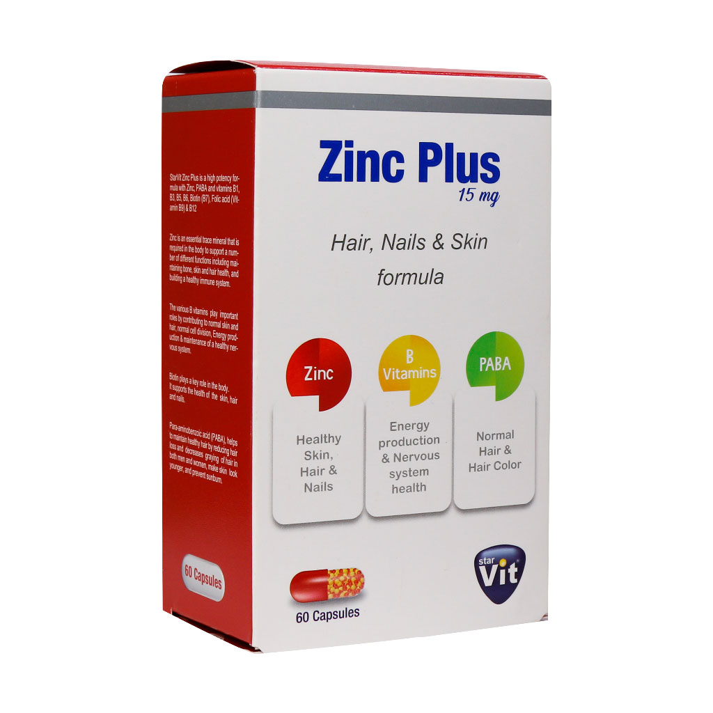 کپسول آهسته رهش زینک پلاس 15 میلی گرم استار ویت 60 عدد