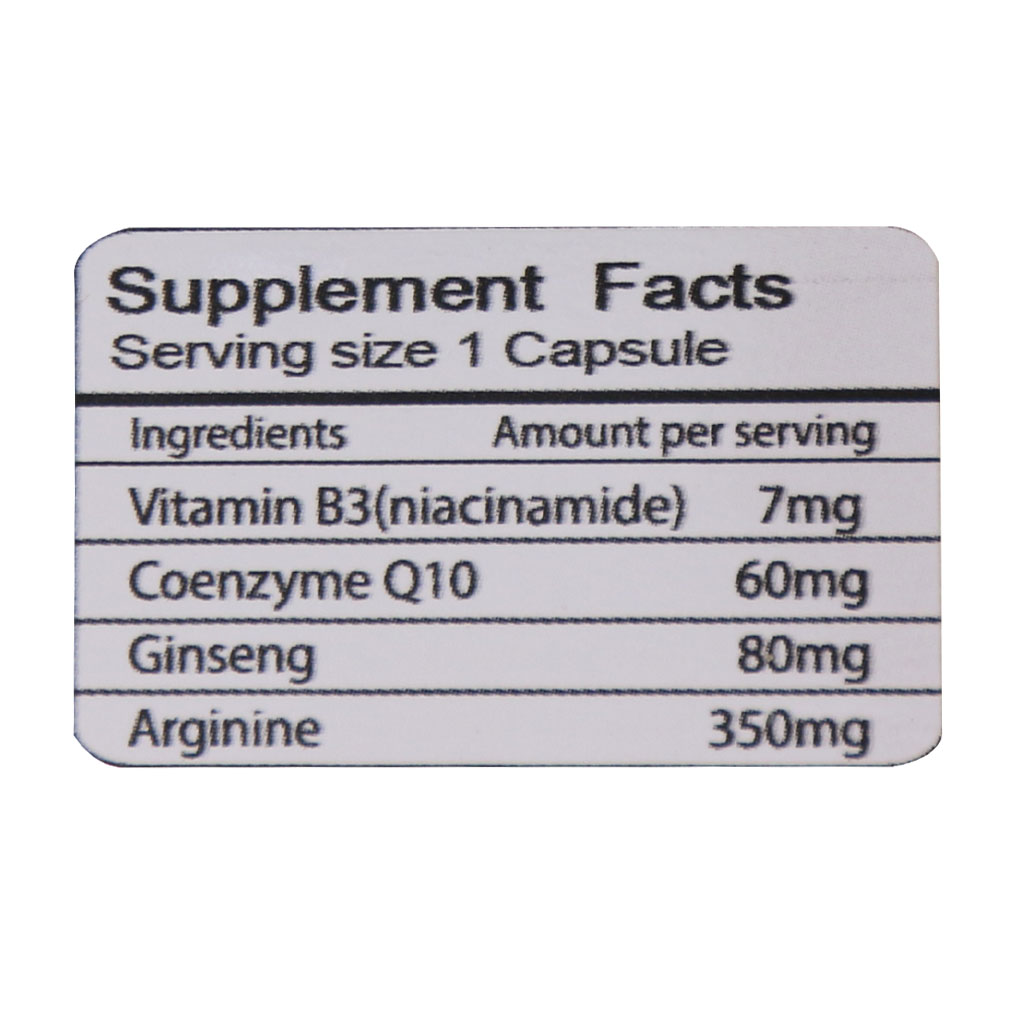 قرص پاور هلث ساپلکس حاوی ویتامین B3، کوآنزیم کیوتن، آرژنین و جینسینگ است که در تقویت عمومی بدن به خصوص آقایان موثر عمل می‌کند. ترکیبات موجود در این فراورده به شرح زیر است: