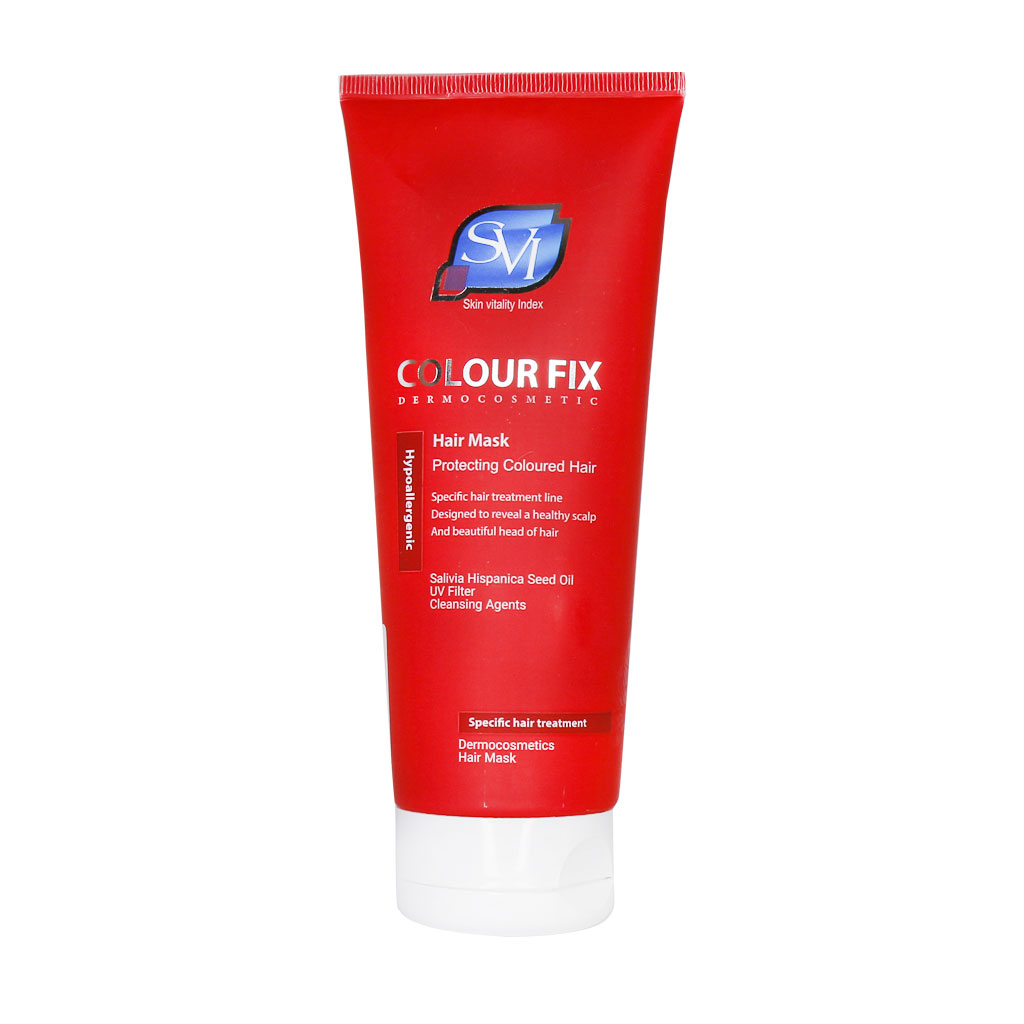 بعد از رنگ کردن مو معمولا موها دچار خشکی و موخوره میشوند. ماسک موی کالر فیکس اس وی آی به ترمیم ساختار تار موهای شما کمک میکند و بافت آسیب دیده را به خوبی ترمیم میکند. ماسک موی تیوپی با آبکشی اس وی آی برای موهای رنگ شده بسیار مناسب بوده و خشکی ساقه موهایتان را ترمیم میکند. همچنین با استفاده از این ماسک مو از تار موهای خود در برابر اشعه ماوراء بنفش محافظت کنید.