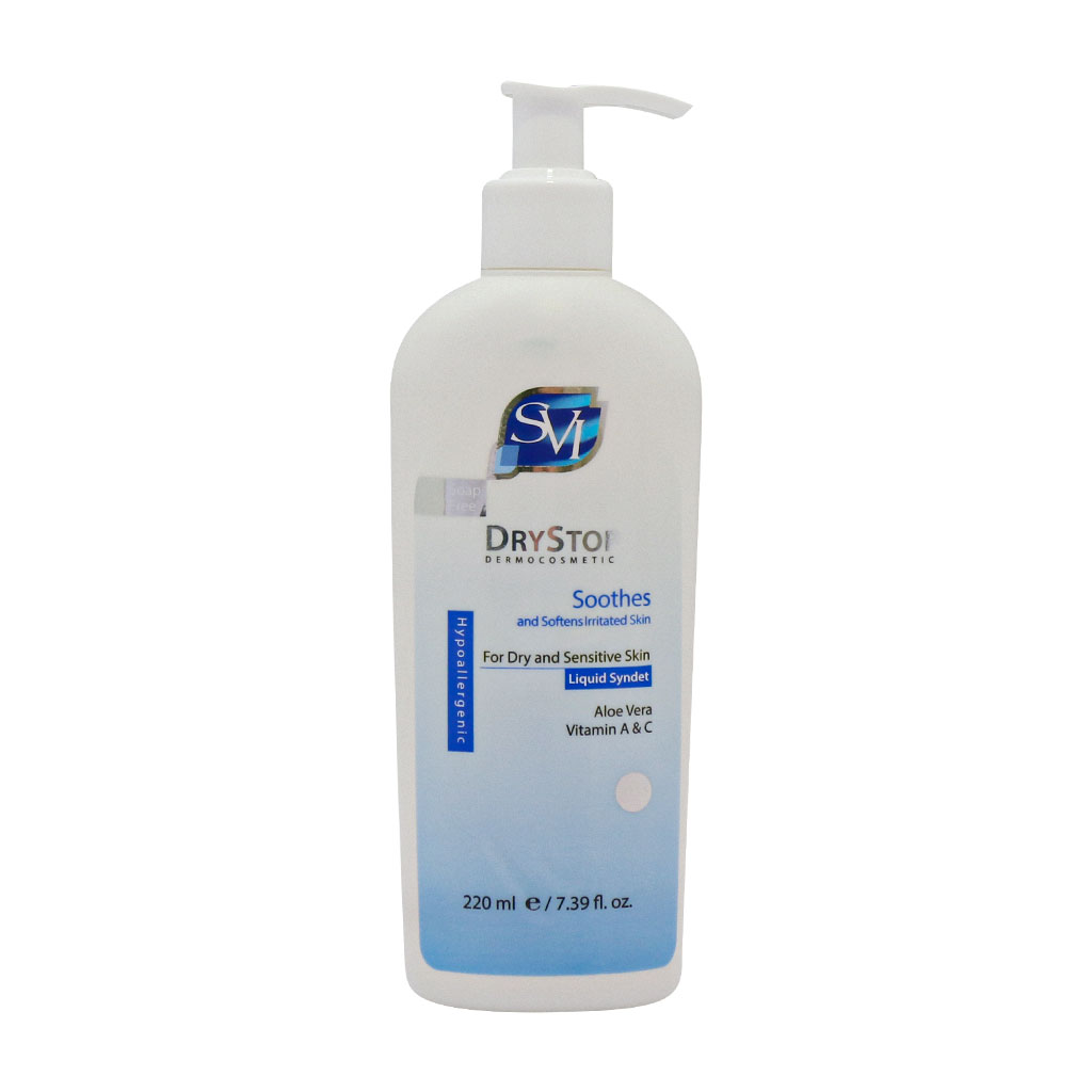 پن مایع غیرصابونی درای استاپ اس وی آی شویندهای بسیار ملایم بوده که فاقد هر نوع ماده قلیایی است. این محصول موجب تقویت لایه دفاعی پوست در هنگام تمیزی آن میشود.