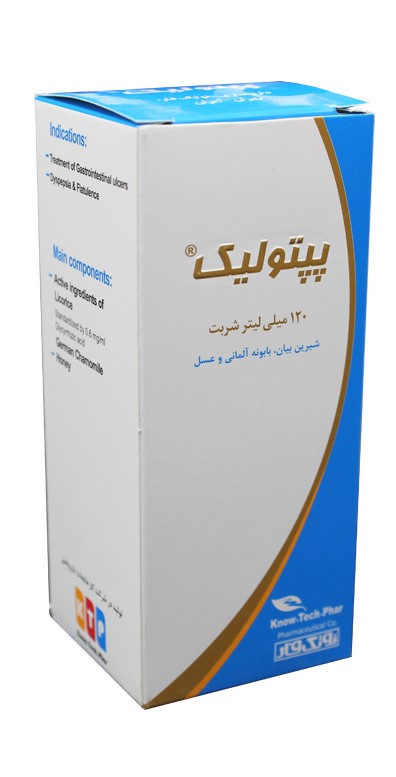 شربت پپتولیک یک محصول گیاهی است که برای کمک به بهبود نفخ، سوء هاضمه و زخمهای گوارشی (شامل مری، معده و روده) استفاده میشود. پپتولیک توسط داروسازی نوتک فار در بستهبندی بطری شیشهای 120 میلیلیتری عرضه میشود و برای کودکان بالای 4 سال و بزرگسالان مناسب است.
