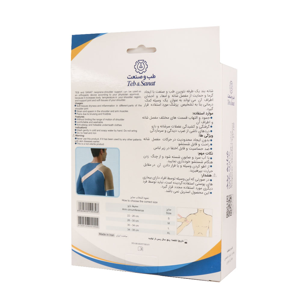 شانه بند یک طرفه طب و صنعت بدون ایجاد محدودیت در حرکات مفصل شانه موجب رفع گرفتگی و کشیدگی عضلات سرشانه و بازو می شود و ضد حساسیت و قابل اختفا در زیر لباس است.