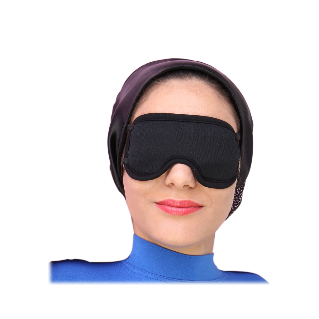چشم بند را طوری ببندید که پارچه ساده به سمت صورت و پارچه پرزدار به سمت بیرون قرار گیرد.