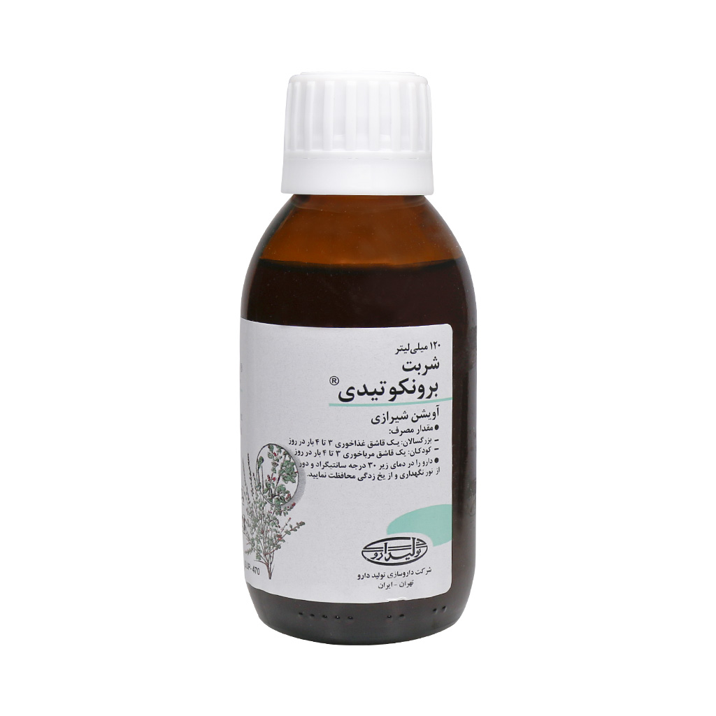 شربت برونکوتیدی تولید دارو تهیه شده از آویشن شیرازی بوده که تاثیر بسزایی در درمان برونشیت و سرفههای همراه با اسپاسم در بیماری سیاه سرفه دارد و خلط آور و موثر در درمان سرفه است.
