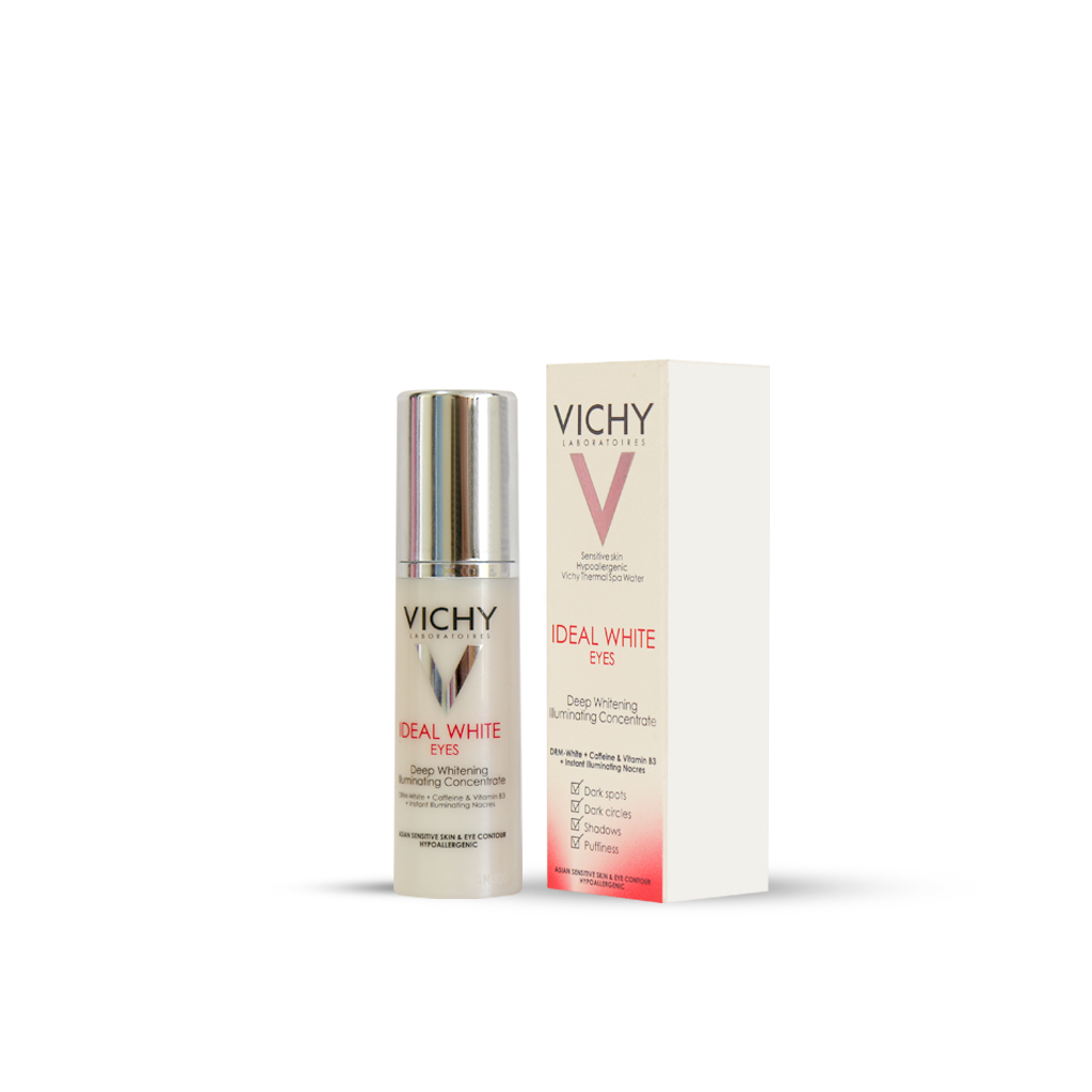 با داشتن کافئین و ویتامین B3، موجب از بین رفتن سیاهی و پف دور چشم همچنین درخشانی پوست دور چشم می شود و مناسب پوست های حساس می باشد. کرم دور چشم روشن کننده ایده آل وایت ویشی ، روشن کننده دور چشم، از بین برنده پف، تیرگی و لک های دور چشم است. این کرم دور چشم به دلیل ذرات مروارید که در ترکیبات خود دارد باعث افزایش درخشندگی پوست اطراف چشم می گردد.