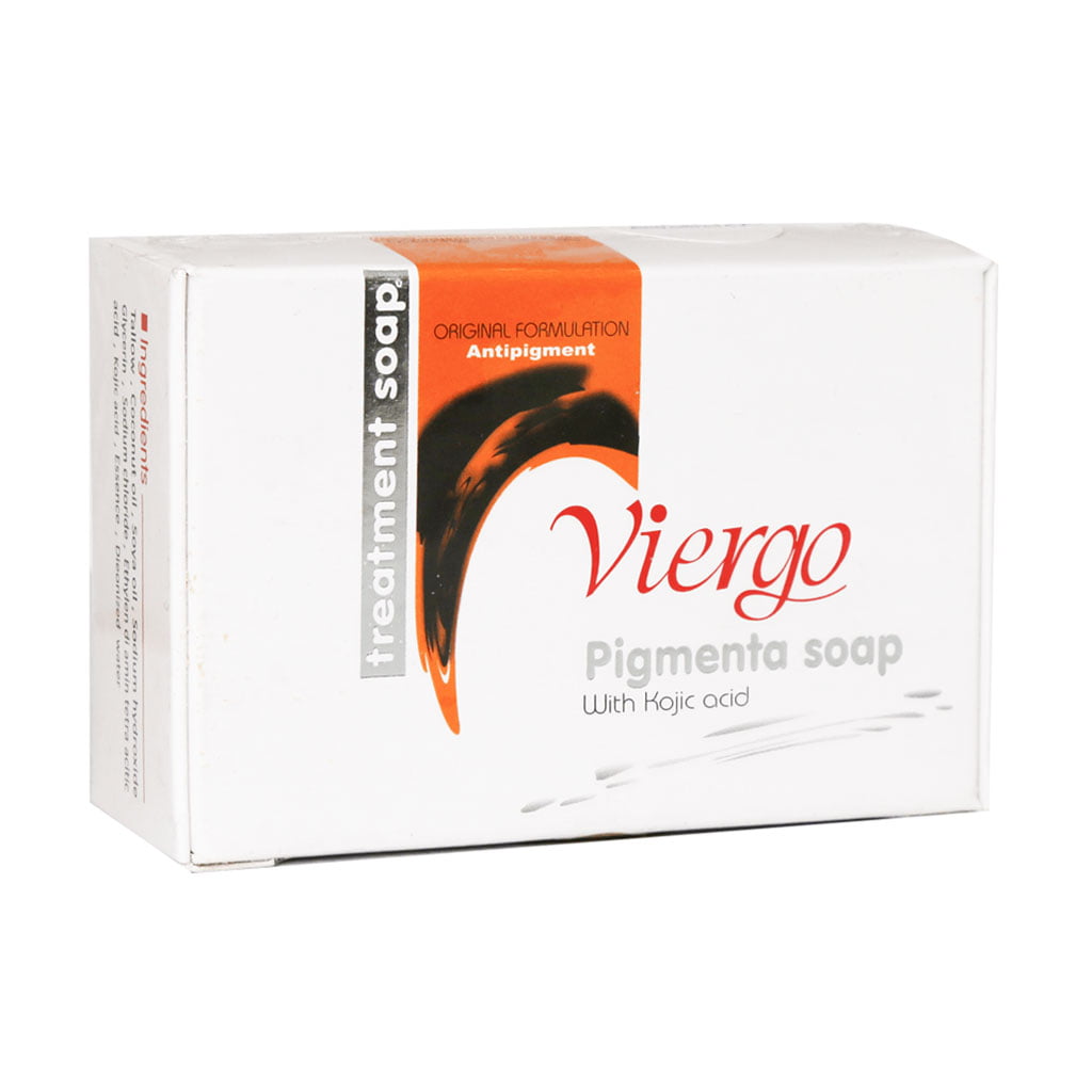 صابون پیگمنتا ویرگو دارای مواد پرخاصیتی مانند کوجیک اسید، روغن نارگیل، روغن سویا و گلیسیرین لک های پوستی را از بین برده و چین و چروکهای پوست را با پیلینگی ظریف در سطح پوست از میان میبرد.