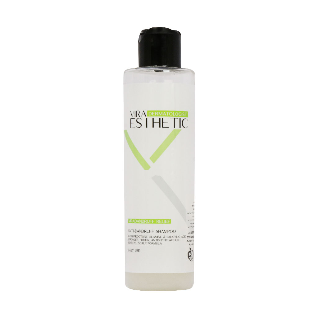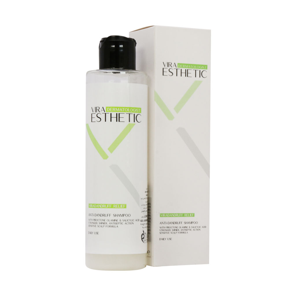 شامپو ضد شوره ویرا استتیک محصولی تخصصی تحت لیسانس ایتالیا بوده که برای موهای دارای شوره فرموله شده است. این شامپو با بهرهگیری از ترکیبات ضد شوره معدنی، به خوبی قادر است شورههای پوست سر را رفع و تاثیر زیادی در جلوگیری از بروز مجدد این مشکل بر روی پوست سر داشته باشد. علاوه بر این، شامپو ویرا استتیک مدلAnti Dandruff با خاصیت ضد قارچی و ضد میکروبی، آلودگیها و عوامل ایجاد کننده شوره را از بین میبرد و پوست سر را پاکسازی میکند.