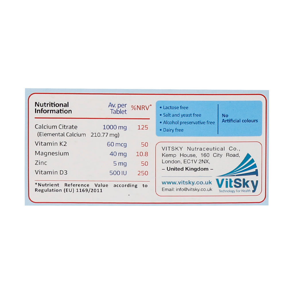 - حاوی کلسیم سیترات، ویتامین D3 و K2