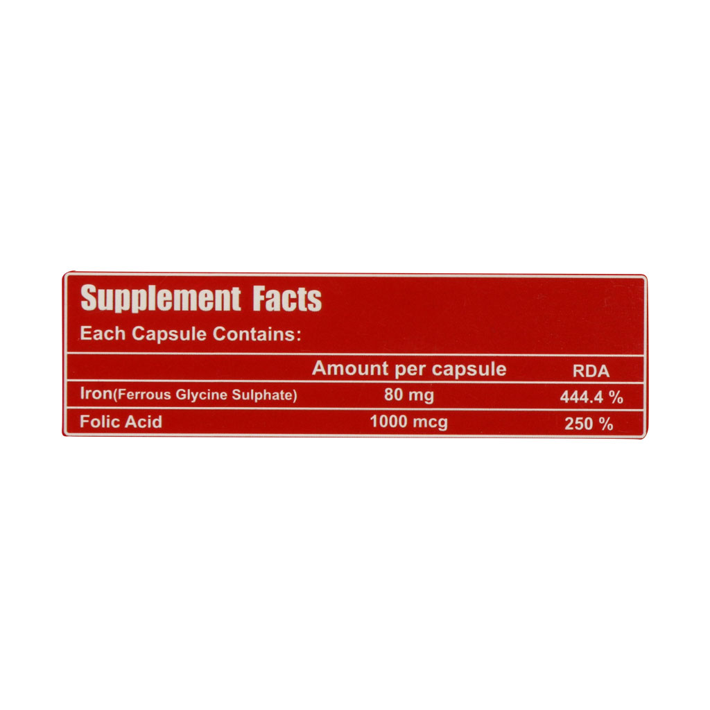 • حاوی 80 میلی گرم آهن به فرم گلایسین سولفات و 1000 میکروگرم فولیک اسید