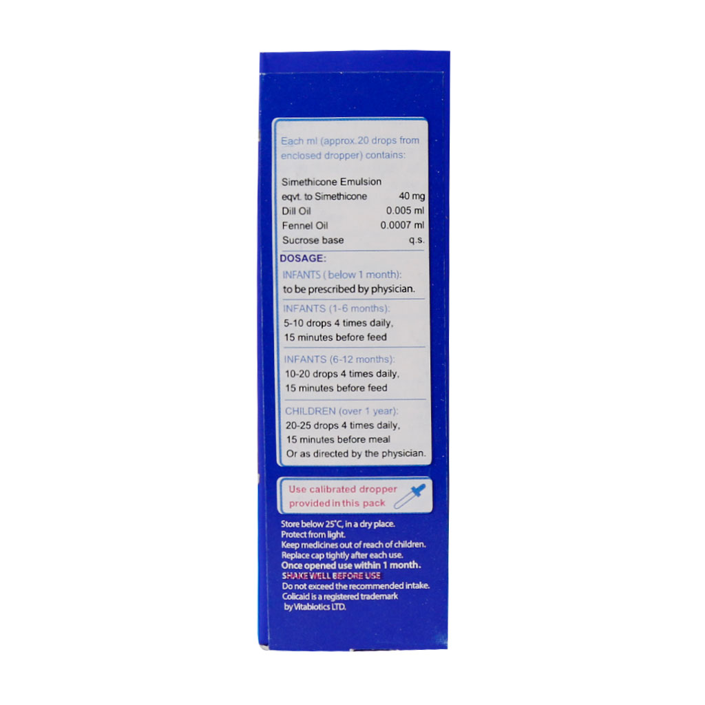 قطره کولیک اید ویتابیوتیکس با از بین بردن نفخ و کمک به خروج گازهای حبس شده در دستگاه گوارش اطفال و کودکان، به برطرف نمودن دردهای شکمی و کولیک حاصل از آن کمک می‌نماید.