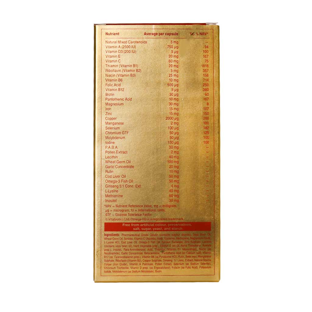 کپسول امگا اچ 3 ویتابیوتیکس شامل امگا 3 و روغن کبد ماهی به همراه 33 عنصر بیولوژیکی یک منبع متعادلی از مواد غذایی ضروری را فراهم می‌کند که برای سلامت عمومی بدن لازم است.