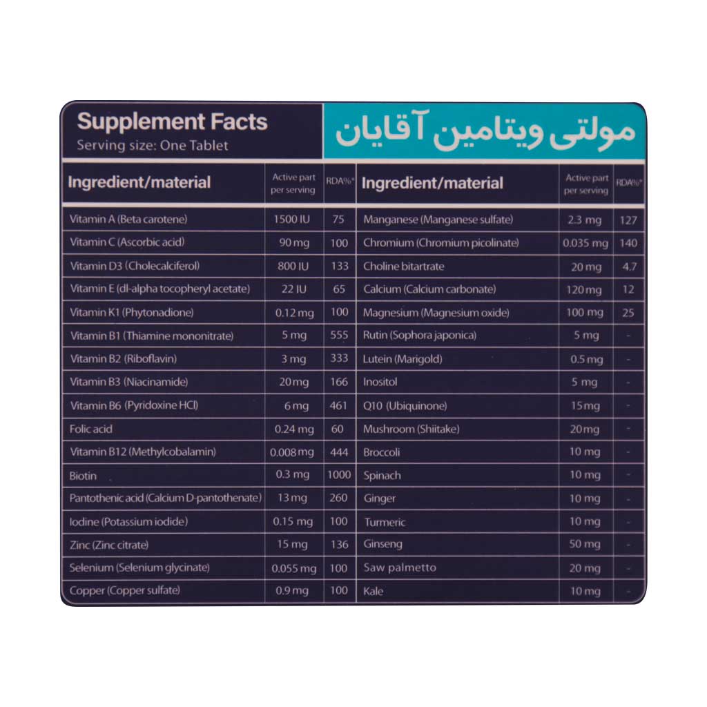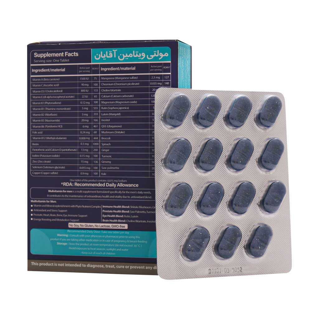 همان طور که بانوان در دوران قاعدگی، بارداری و شیردهی به مصرف مولتی ویتامین نیاز دارند، آقایان هم برای رفع نیازهای بدنی خود به انواع مواد معدنی و ویتامینها نیاز دارند که با خرید مولتی ویتامین مخصوص آقایان مانند قرص مولتی ویتامین آقایان ویتاگیت صورت میگیرد. در این مکمل از تمام ویتامینها و مواد معدنی مورد نیاز بدن جهت تقویت سیستم ایمنی، افزایش سطح انرژی و کاهش خستگی استفاده شده است. همچنین از عصارههای گیاهی جهت بهبود عملکرد سلولها و حفظ سلامت عمومی بدن آقایان استفاده شده است.