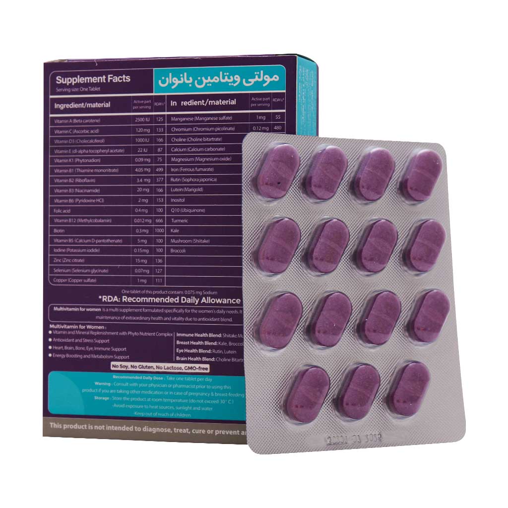 زنان به واسطه عادت ماهانه به انواع ویتامینها و مواد معدنی نیاز دارند. بعضی از مکملها برای سلامت جسمانی زنان در دوران قاعدگی و بارداری کاملا مهم و ضروری است و نیازهای بدن آنها را تامین میکند. نداشتن رژیم غذایی سالم، آسیبهای شدیدی به بدن وارد خواهد کرد که از طریق خرید مولتی ویتامین زنان میتوان به جبران کمبود آنها کمک نمود. قرص مولتی ویتامین بانوان ویتاگیت به تامین نیاز روزانه بدن خانمها به ویتامینها و املاح کمک کرده و بهبود سطح انرژی، کاهش خستگی، تقویت سیستم ایمنی بدن، سلامت سیستم عصبی و سلامت قلب و عروق را به دنبال دارد. مولتی ویتامین بانوان ویتاگیت فاقد سویا، گلوتن، لاکتوز و محصولات دستکاری شده ژنتیکی است.