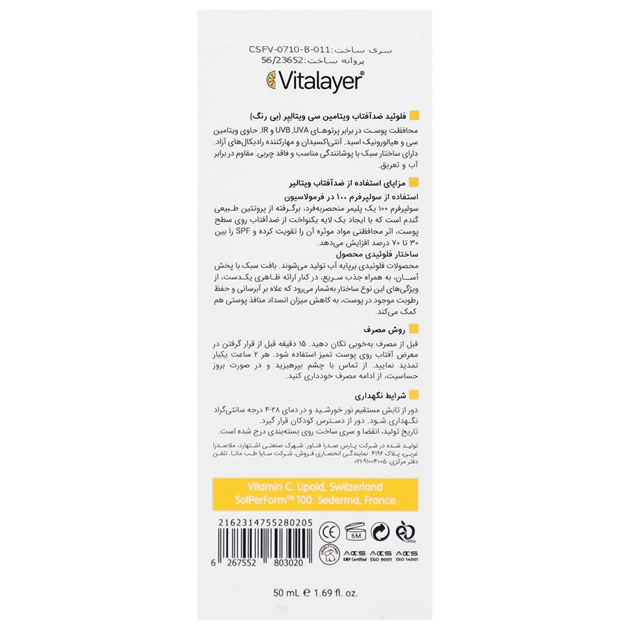 فلوئید ضد آفتاب SPF50 حاوی ویتامین C ویتالیر 50 میلی لیتری