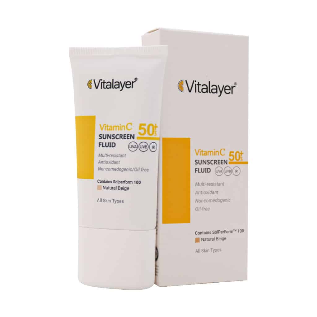 ویژگی های فلوئید ضد آفتاب SPF50 حاوی ویتامین C ویتالیر