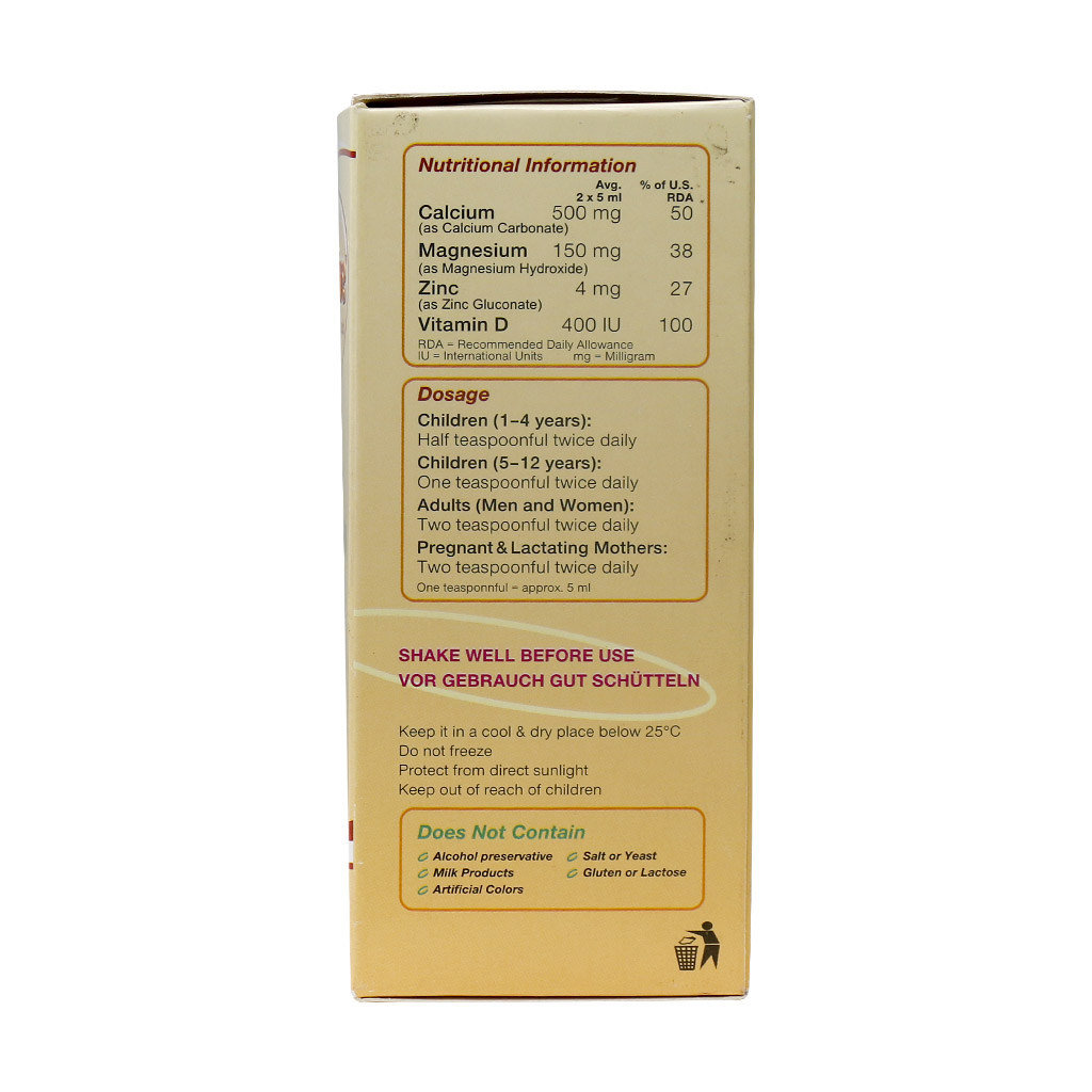 این شربت به واسطه دارا بودن مقادیر قابل توجهی کلسیم در ترکیبات خود، یک مکمل بسیار موثر جهت ساخت استخوانها و استحکام دندانها در دوران کودکی و نوجوانی است. در این دوران، کودکان رشد بسیار سریعی دارند و استخوانها رشد نموده و متراکمتر میشوند و تا حدود سن 30 سالگی به حداکثر تراکم خود خواهند رسید. در نتیجه نیاز به کلسیم در کنار ویتامین دی در سنین رشد بسیار حائز اهمیت است. جدای از آن منیزیم موجود در این فراورده بر فعالیت استئوبلاست و استئوکلاستها تاثیر میگذارد. این دو فاکتوری برای آنزیمهای کلیدی هستند که متابولیسم کلسیم را تنظیم میکنند. جهت خرید و مشاهده قیمت کلسیم به دسته بندی مربوطه مراجعه نمایید.