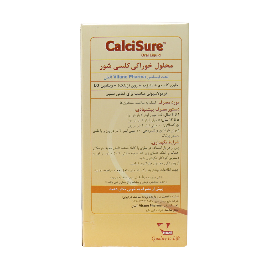 - حاوی کلسیم، منیزیم، روی و ویتامین D3