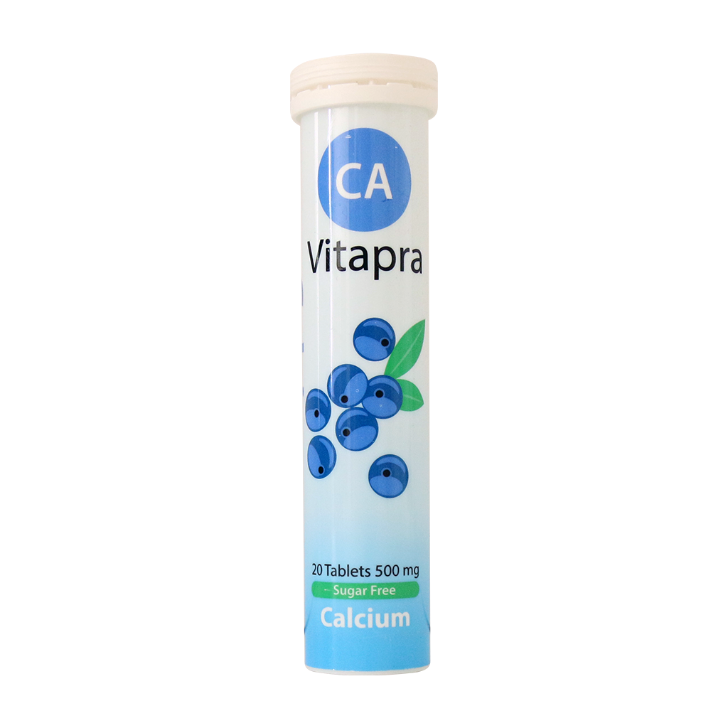 قرص جوشان کلسیم 500 میلی گرم ویتاپرا محصولی ایده آل است، که با حل شدن در آب و هضم آسان کلسیم بدن افراد را تامین می‌کند. این قرص کلسیم با طعم و عطر بلوبری حس خوشایندی به شما خواهد داد. کلسیم، فراوان ترین مینرال (ماده معدنی) موجود در بدن است. بیشتر کلسیم در استخوان‌ها و دندان‌ها نشسته است و تنها 1% آن در بقیه بدن وجود دارد که همین 1 درصد اعمال زیادی انجام می‌دهد، مثلاً انقباض همه ماهیچه‌های ما بسته به وجود کلسیم است.