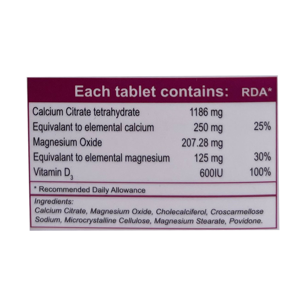 - حاوی کلسیم سیترات، منیزیم و ویتامین D