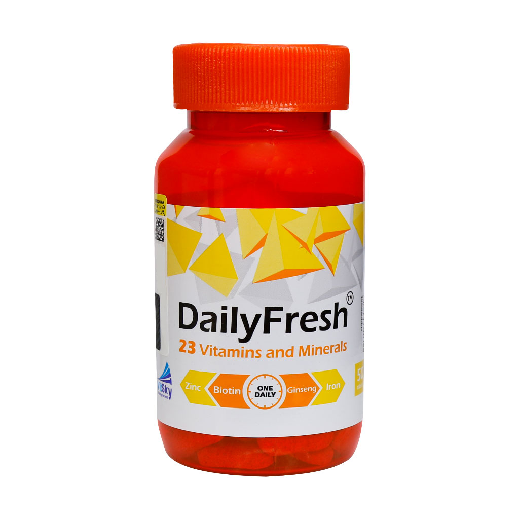 قرص daily fresh جهت حفظ سلامتی، تقویت سیستم ایمنی، تقویت حافظه و یادگیری، تامین انواع ویتامینها و مواد معدنی، تولید انرژی و کاهش خستگی مناسب است. کمبود هر کدام از این ویتامینها و مواد معدنی باعث مشکلات و بیماریهایی در بدن میشود. در مکمل دیلی فرش 23 نوع ویتامین و املاح معدنی ضروری برای بدن وجود دارد که به خوبی میتواند نیازهای روزانه فرد را برطرف کند و انتخاب عالی برای شما خواهد بود.
