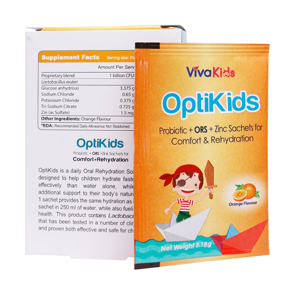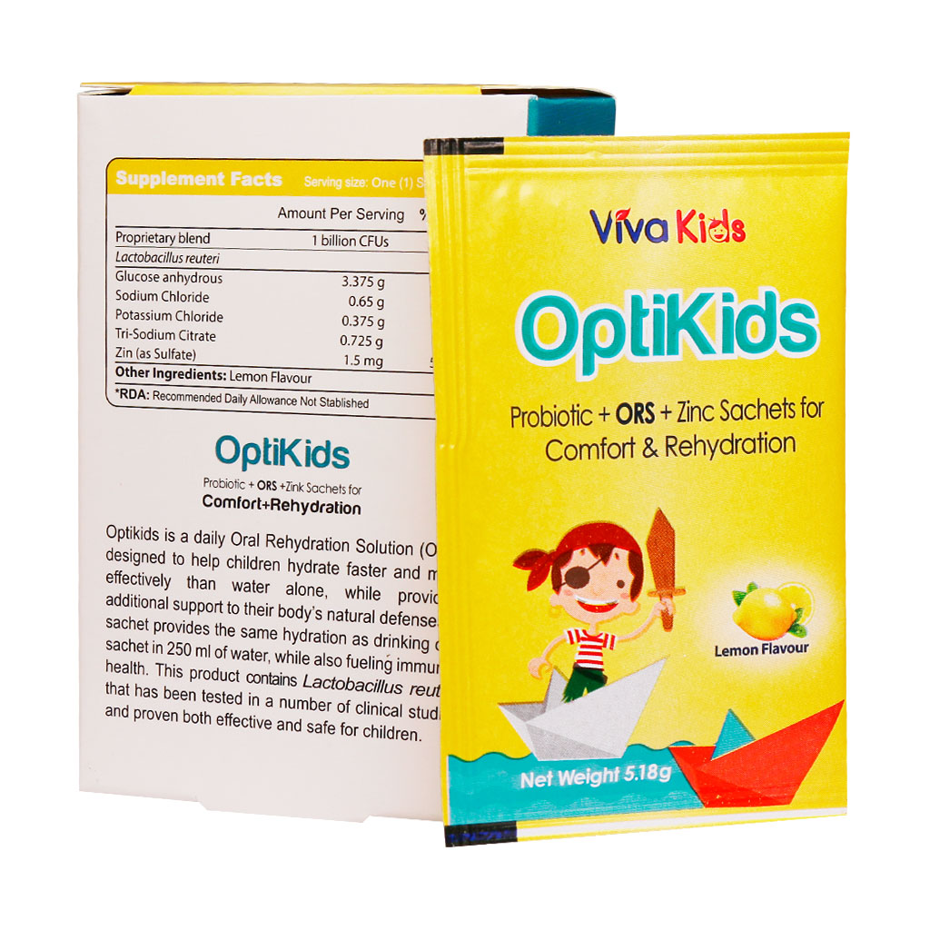 ساشه اپتی کیدز ویوا کیدز با آبرسانی به دستگاه گوارش به جبران کمبود آب در بدن بر اثر اسهال کمک میکند. این محصول که مخصوص کودکان و نوجوانان است تعادل نمکها در روده را تنظیم کرده و عملکرد سیستم گوارش را بهبود میبخشد.